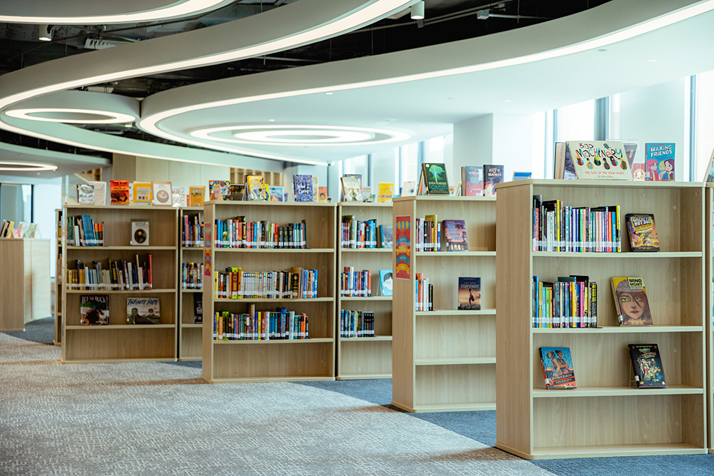 ISA Liwan School Library has a partially hollow design on the second floor, in which more than 50,000 books can be efficiently circulated, providing students with advanced technology support to maximize digital learning.